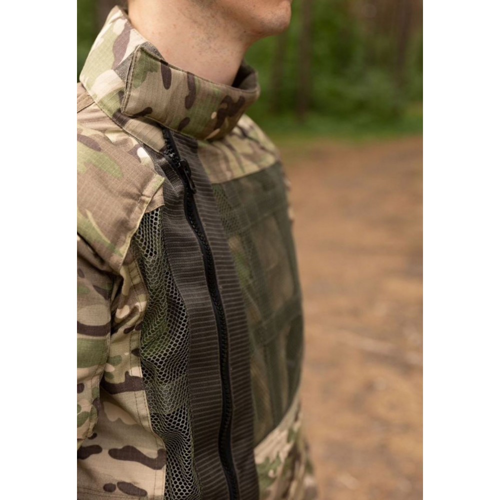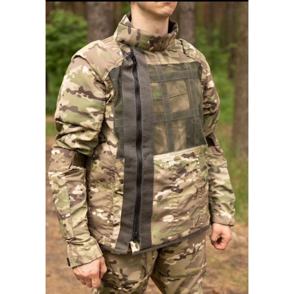 Защитный противоосколочный костюм включает куртку и брюки, изготовленные из прочной ткани Rip-Stop с плотностью 220 г/м².
