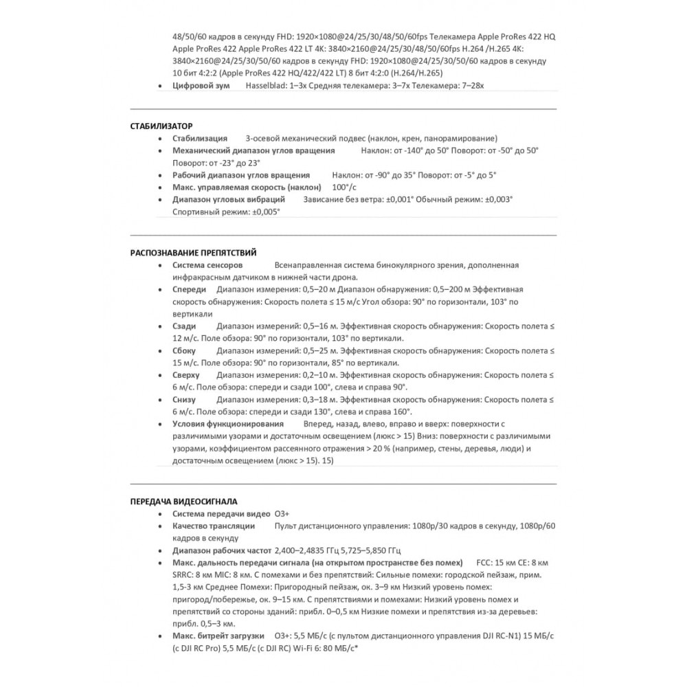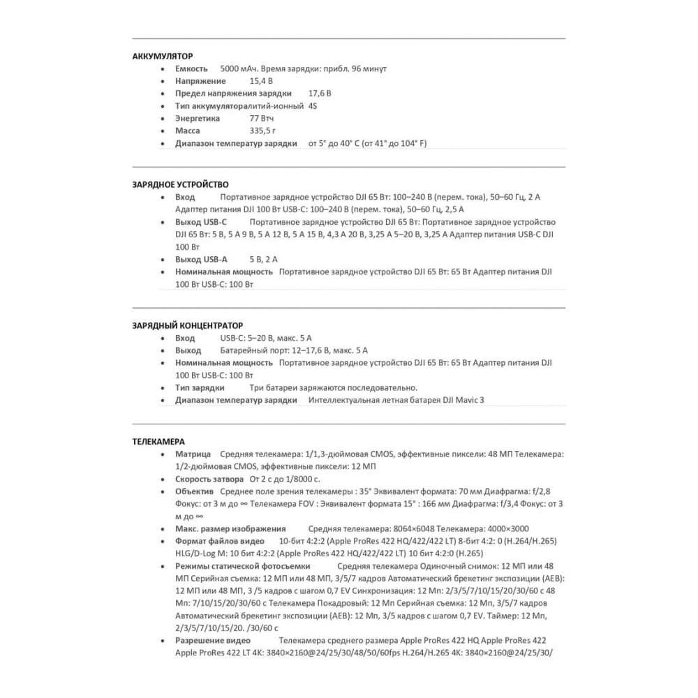 В Mavic 3 Pro установлена тройная камера Hasselblad: основная широкоугольная, телеобъектив среднего зума и длиннофокусный телеобъектив. Такой набор позволяет и «снимать картинку сверху» в широком угле, и аккуратно приближать целевые объекты без потери деталей. Разрешение видео до 5.1K даёт чёткую, информативную картинку, на которой хорошо читаются ориентиры, техника и инфраструктура. Цветопередача Hasselblad обеспечивает естественные цвета и высокий динамический диапазон — важный плюс при работе в сложных условиях освещения (рассвет, закат, дымка). - Время полёта до 43 минут (с АКБ)